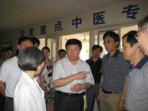 2009年6月26日上午,中医药管理局吴刚副局长,湖南省中医药管理局刘君武局长、郭子华副局长、湘潭市人民政府苏健全副市长、市卫生局李述智局长等领导,在我院朱继武院长的陪同下在小儿矫形科检查指导工作。杨寿峨主任向吴刚副局长一行汇报了我院专科的特色优势,以及今后专科的发展规划。之后,吴刚副局长认真查看了相关资料,参观了薰洗室、功能锻炼室、治疗室、病房。吴刚副局长充分肯定了我院专科专病的中医治疗优势,并指出:加强重点专科的建设,强化科研意识,做好人才梯队的培养,进一步发挥中医药特色优势,共同推进中医药事业发展。